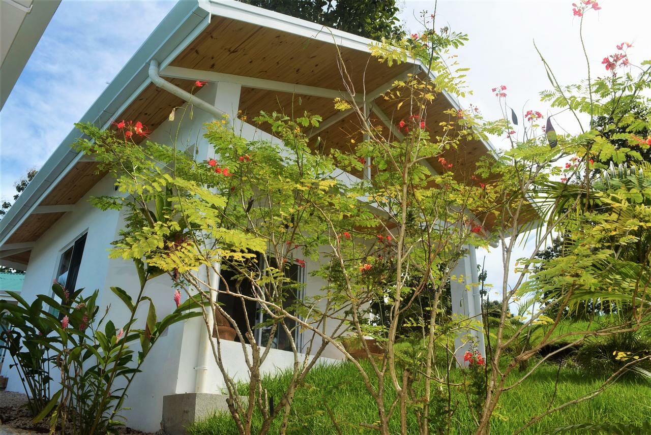 La casa está ubicada en una hermosa plataforma con vistas panorámicas hacia las montañas de Hojancha y al Océano Pacífico.