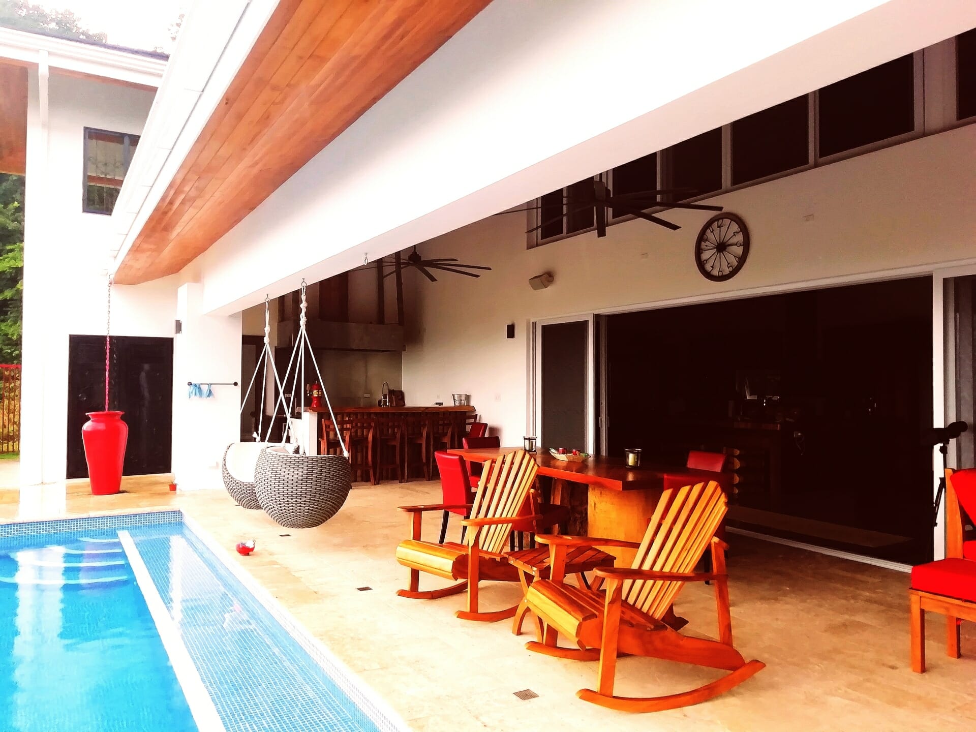 Escondida entre las lomas aledañas a Playa Buena Vista de Nicoya, se encuentra una vivienda de amplios espacios y pocas divisiones. Una terraza con piscina y bar domina el nivel principal y relaciona todas las habitaciones.