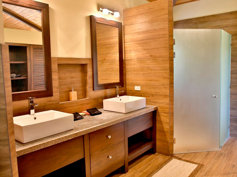 Dos dormitorios, un amplio servicio sanitario con ducha exterior y las áreas de servicios componen el primer nivel.
