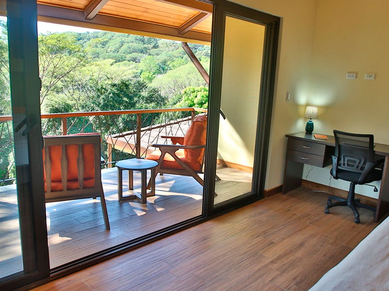 En el segundo nivel, el dormitorio principal tiene su propio balcón, baño y closet abierto.