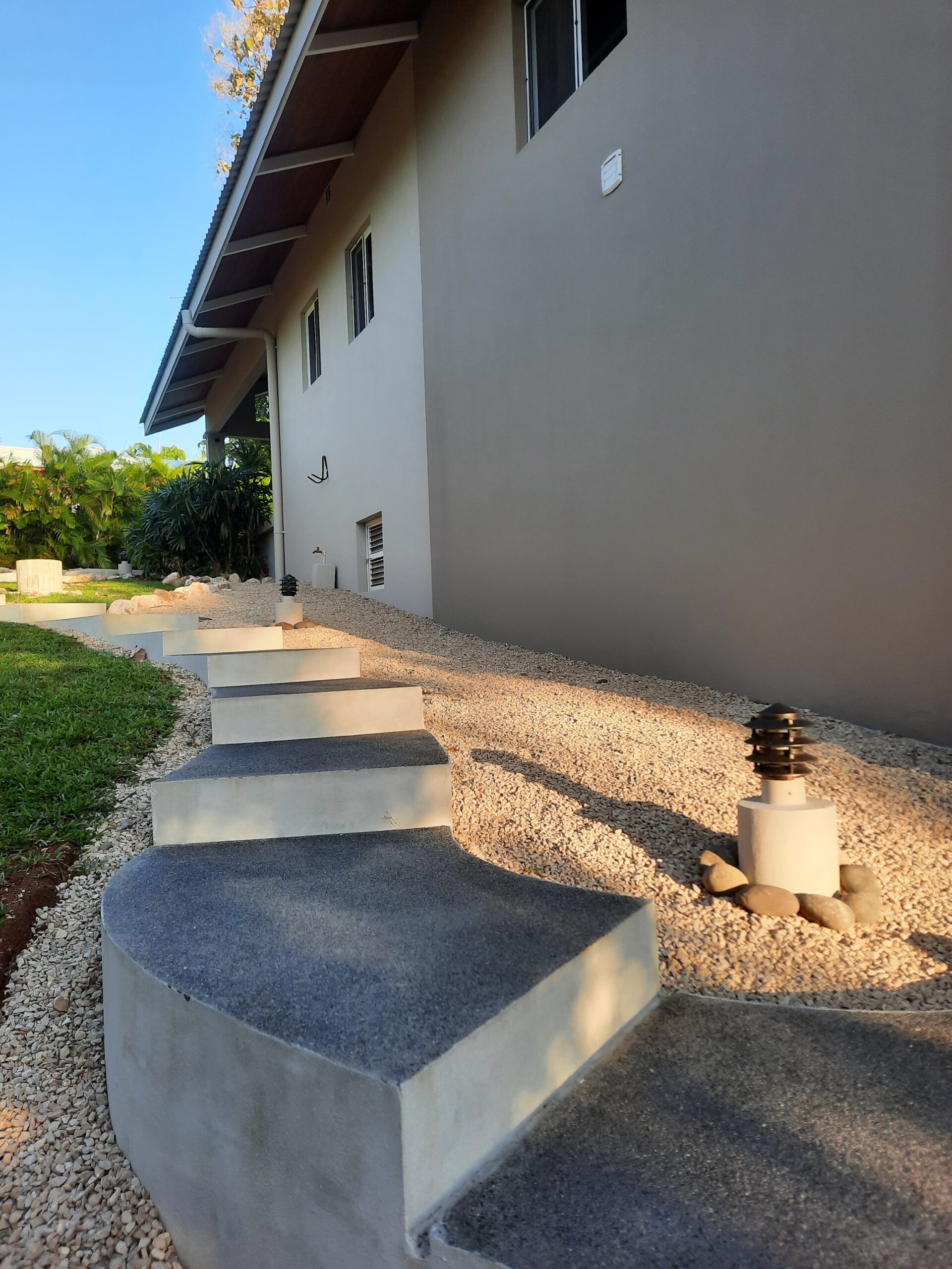 Luego de 6 años de disfrutar de su casa, los propietarios han decidido mejorar la relación del interior con el entorno de jardines inmediato y habilitar el espacio debajo de la casa para almacenamiento.